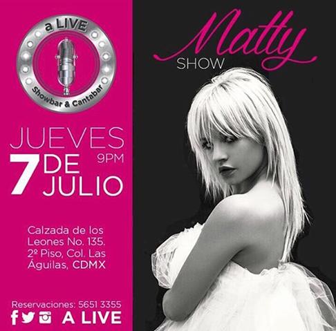 MATTY PINK es su nombre de batalla en los escenarios, lo que demostrará este jueves 7 de julio a las 21 horas en el showbar A LIVE (Calzada de Los Leones 135, segundo piso, Colonia Las Águilas), al sur de la CDMX.