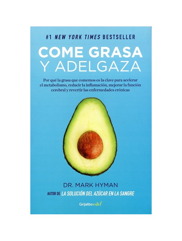 Por qué la grasa que comemos es la clave para acelerar el metabolismo, reducir la inflamación, mejorar la función cerebral y revertir las enfermedades crónicas, son algunas de las preguntas que el médico, investigador y autor bestseller del New York Times, Mark Hyman (La solución del azúcar en la sangre) responde en COME GRASA Y ADELGAZA (Editorial Grijalbo vital, 477 páginas), que nos ofrece un plan de acción -como lo refiere David Perlmutter (Cerebro de pan) para que todos tengamos la oportunidad de recobrar nuestra salud y alcanzar, por fin, un peso saludable».