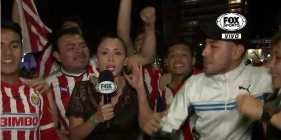 No es la primera vez que ocurre en una transmisión en vivo durante un enlace a las afueras de un estadio de futbol o de algún otro deporte. Pero sí la primera en que una reportera, en este caso, MARÍA FERNANDA MORA, de FOX SPORTS, reacciona contra sus agresores el pasado 26 de abril en la fuente de La Minerva, en Guadalajara, luego de la victoria de Chivas en penales, en la final de la Concachampions ante Toronto.