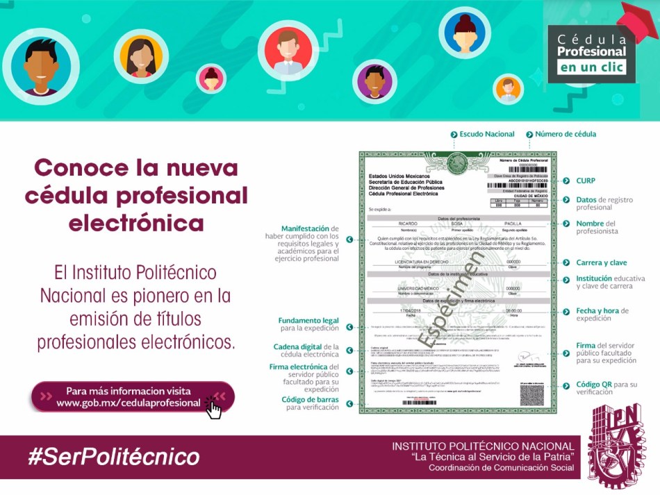 Los alumnos del Politécnico pueden obtener su cédula profesional electrónica bajo el nuevo sistema de egresados y quienes obtuvieron su título profesional de 2015 a la fecha. Para mayor información y tramites en línea vista la página;