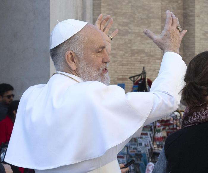 Pero fue el rodaje de la nueva serie de televisión de Paolo Sorrentino, «El nuevo Papa», después del anterior y muy exitoso «El joven Papa». Para hacerse pasar por el Pontífice, en este caso, está el actor estadounidense John Malkovich, con una barba blanca, una expresión seria y de sotana, y una gorra blanca ordenada.