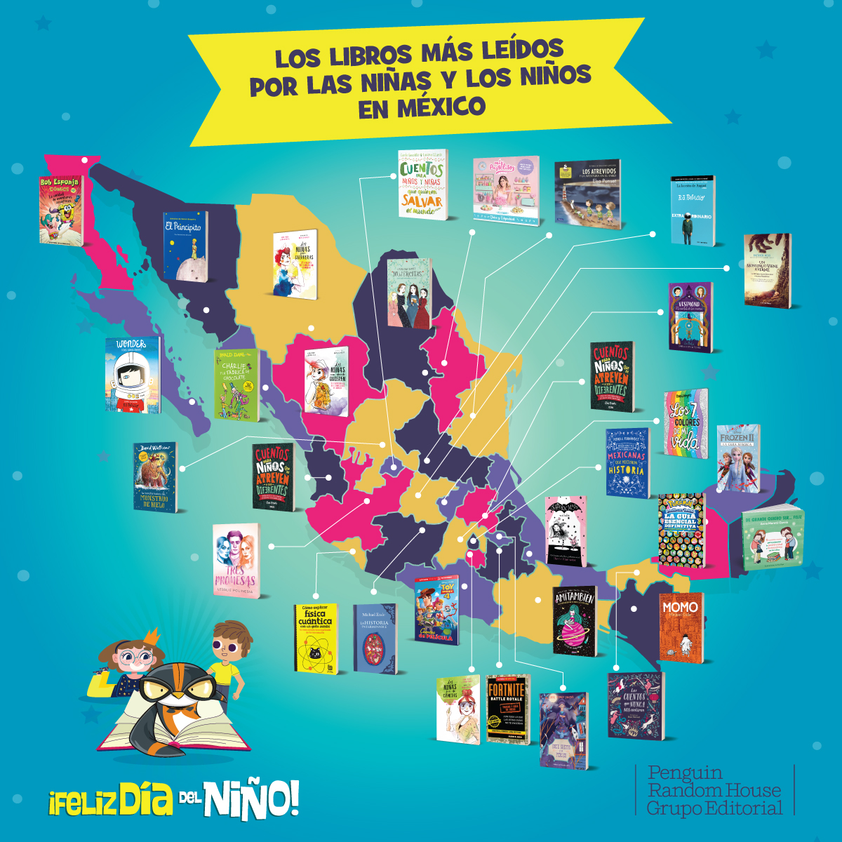 En este día dedicado a las niñas y los niños de México, Penguin Random House, comparte un mapa con los libros más leídos por los pequeños en cada estado de la República Mexicana, con el propósito de observarlo y localiza tu próxima lectura.