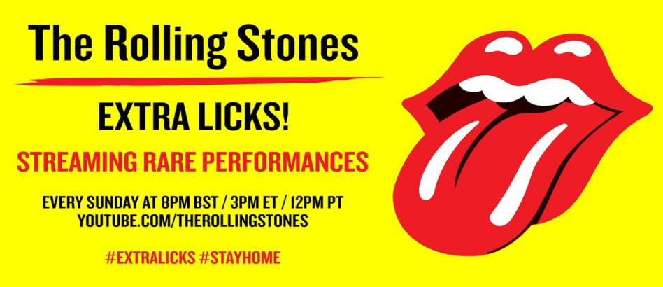 Como parte de la campaña global #StayHome (#QuédateEnCasa), The Rolling Stones estrenarán una serie semanal titulada “Extra Licks” disponible en el canal oficial de YouTube de la banda, comenzando por este domingo 3 de mayo a las 2pm (hora del centro).