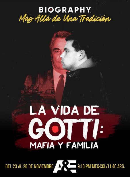 Por la telera nuestra de A&E, bajo el sello Biography, se estrena este lunes a las 22:10 horas, la miniserie documental LA VIDA DE GOTTI: MAFIA Y FAMILIA, que profundiza en la relación padre e hijo, dos hombres que se criaron en la mafia y se convirtieron en el rey reinante y el aparente heredero, respectivamente, de lo que podría ser la última de las grandes dinastías mafiosas.