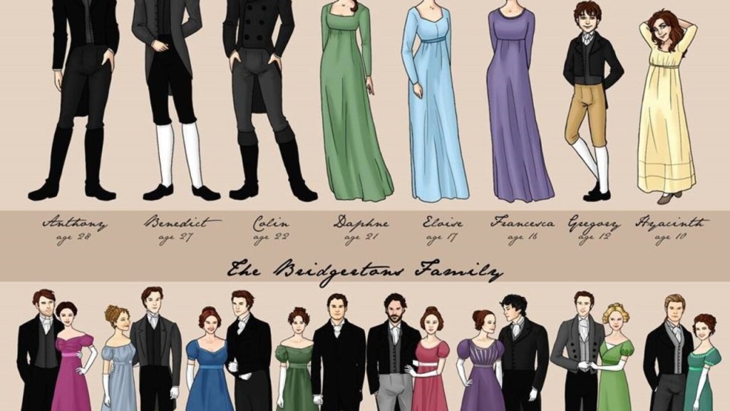 La historia tiene lugar entre 1813 y 1827 y cuenta las historias de los ocho hijos del vizconde Bridgerton: el primogénito Anthony, luego Benedicto, Colin, Daphne, Eloise, Francesca, Gregory y el pequeño Hyacinth.