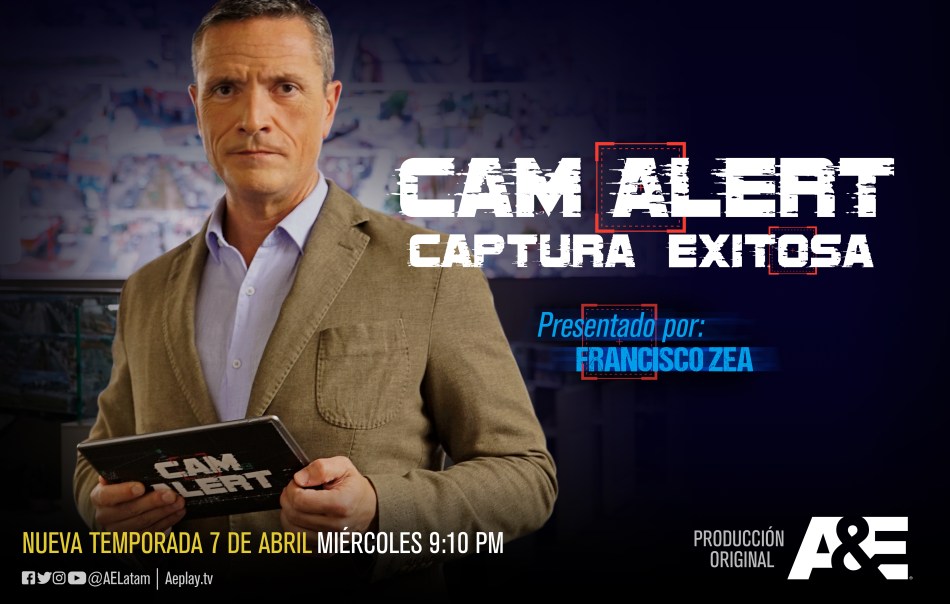 Esta noche a las 21:10 horas se estrena por la telera nuestra de A&E la segunda temporada de CAM ALERT: CAPTURA EXITOSA, producción original conducida por FRANCISCO ZEA, que muestra la realidad que captan las cámaras de vigilancia ubicadas en distintos estados de México sumando a los estados de Jalisco y Michoacán, donde se ubica el mayor Centro de Control de América Latina.