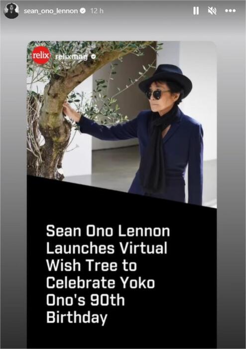 Además de abrir la página en línea wishtreeforyokoono.com «para darle al mundo entero la oportunidad de pedir un deseo», Sean Lennon alentó a los admiradores de su madre a plantar árboles reales. «Mi mamá no puede pasar junto a un árbol sin abrazarlo con entusiasmo», explicó el hijo de John y Yoko.