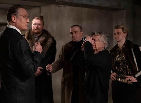 «A las ocho en punto algunas personas muy importantes cenarán en nuestras mesas. La vida de millones de personas dependerá del humor con el que salgan a la mañana siguiente. Es nuestro deber asegurarnos de que sus traseros no se atrofien, porque las sillas son demasiado duras, se atiborran de caviar hasta explotar y les sale champán por la nariz y por las orejas. ¿Está claro?», dice como un auténtico general Hansueli (Oliver Masucci),