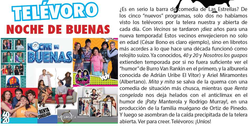 por TV&SHOW 13 septiembre, 2017 Número de comentarios0 Telévoro NOCHE DE BUENAS Dale clic a la imagen para verla en su tamaño original TELÉVORO / TV&SHOW